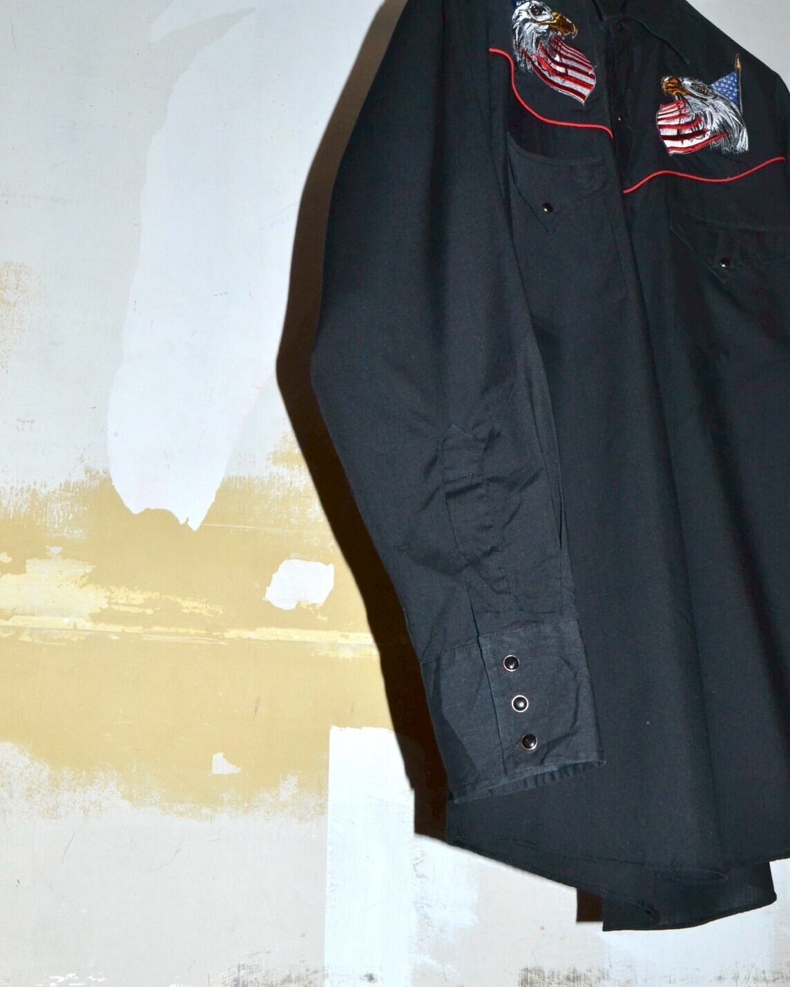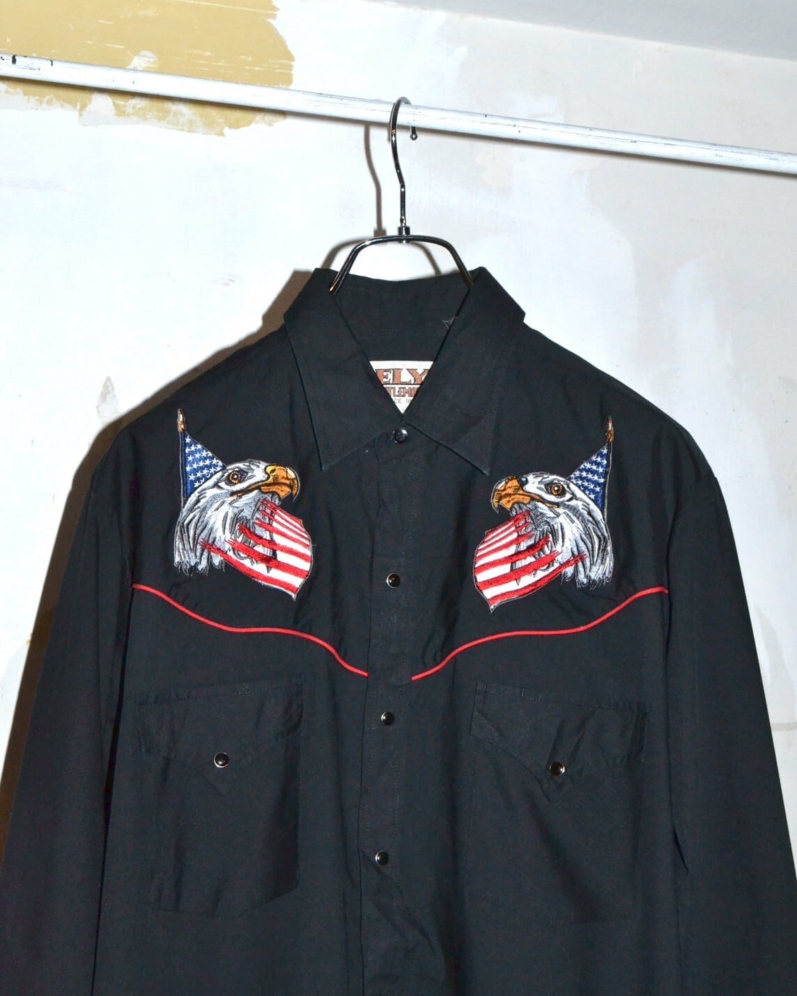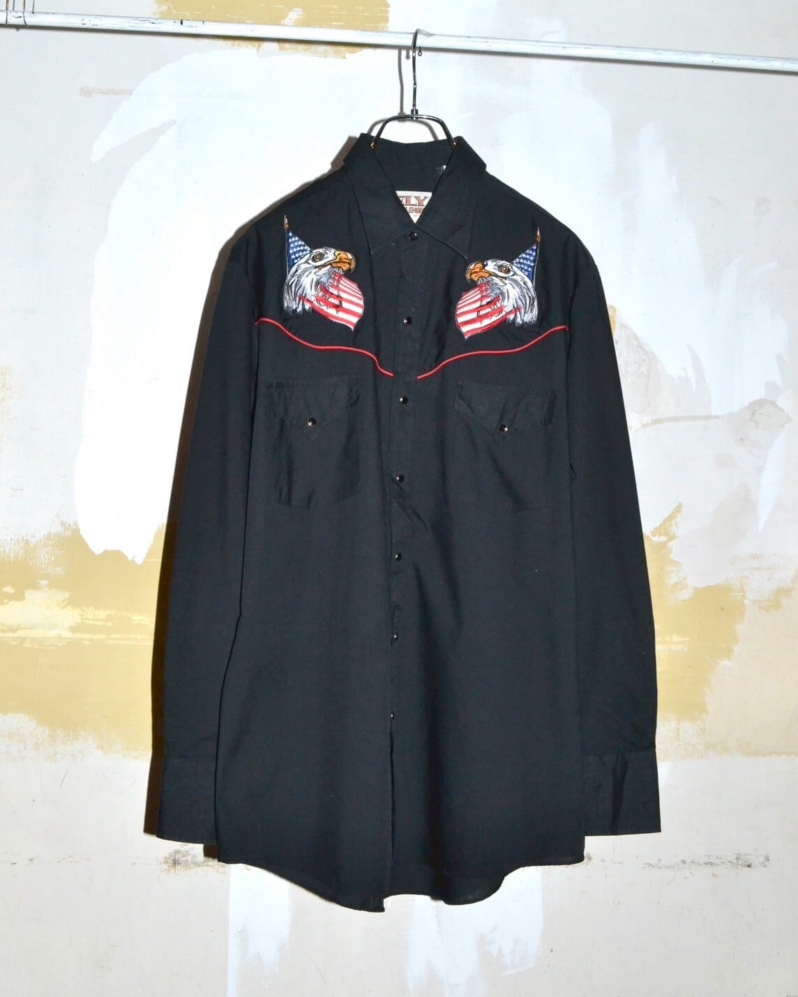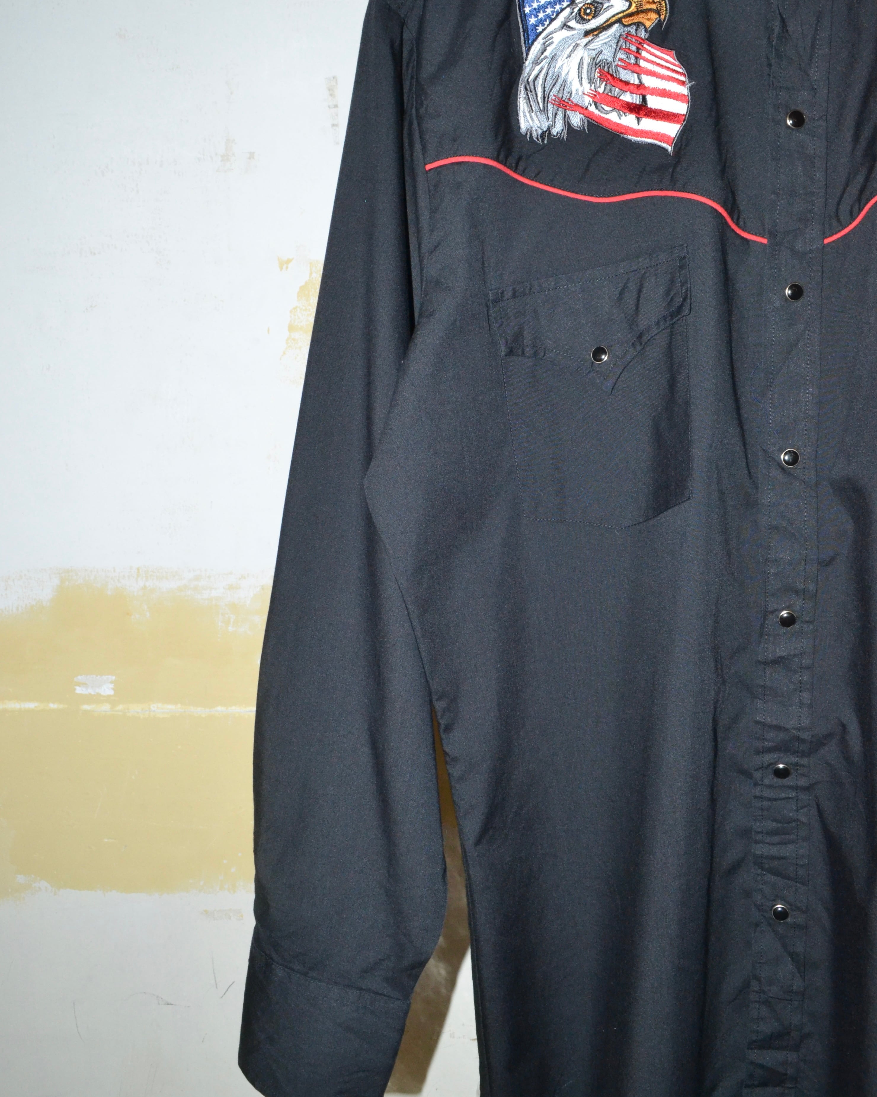 ヨーク部分にアメリカ国旗と鷲の組み合わさったインパクトのあるデザインが特徴的なウエスタンシャツ。