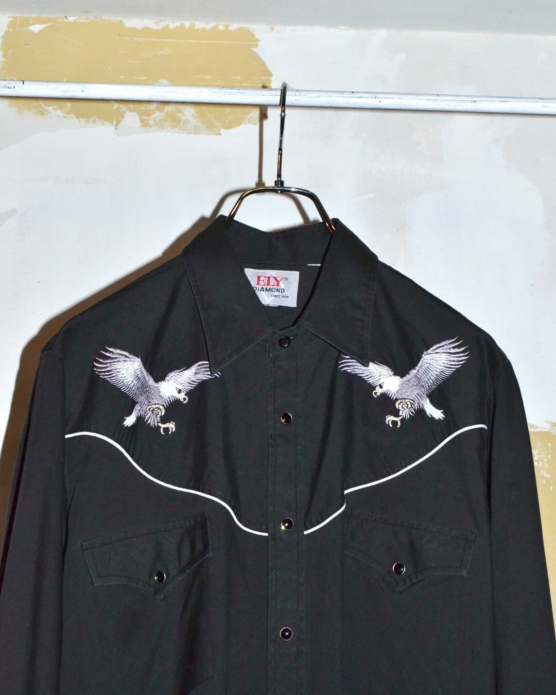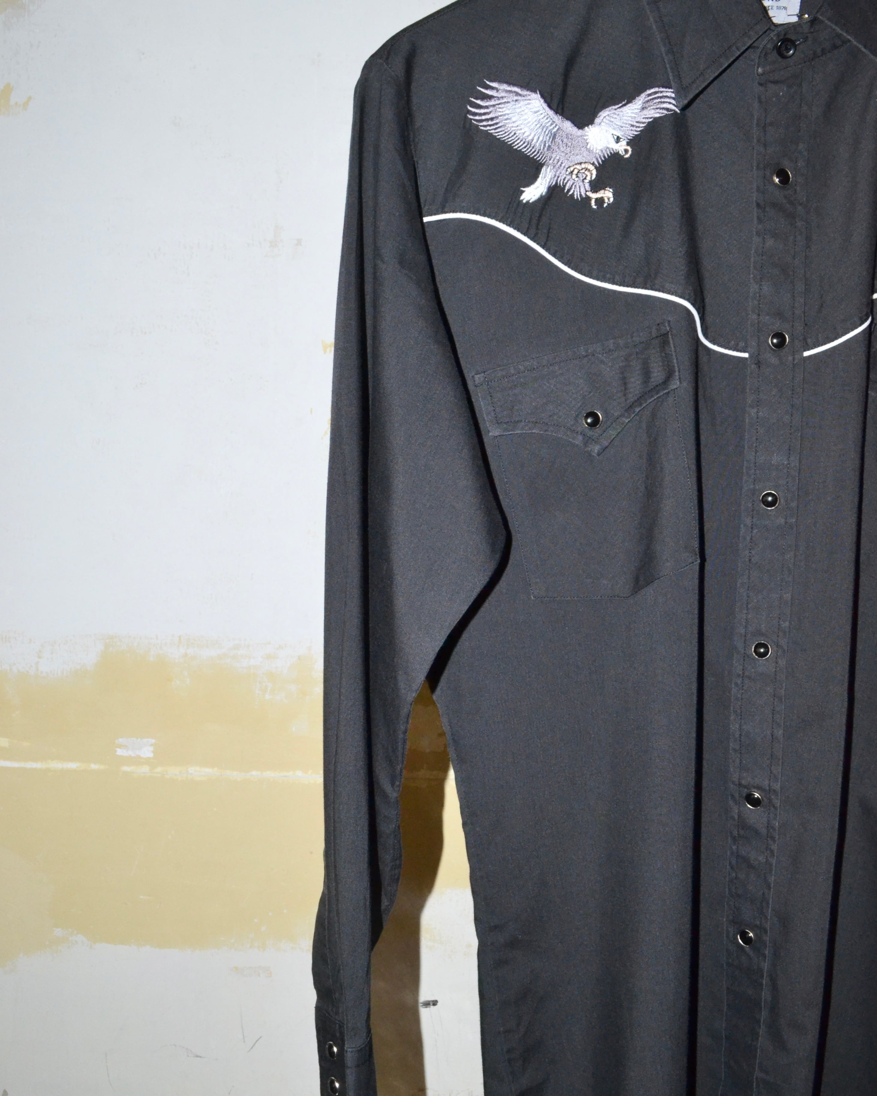 ヨーク部分にアメリカ国旗と鷲の組み合わさったインパクトのあるデザインが特徴的なウエスタンシャツ。