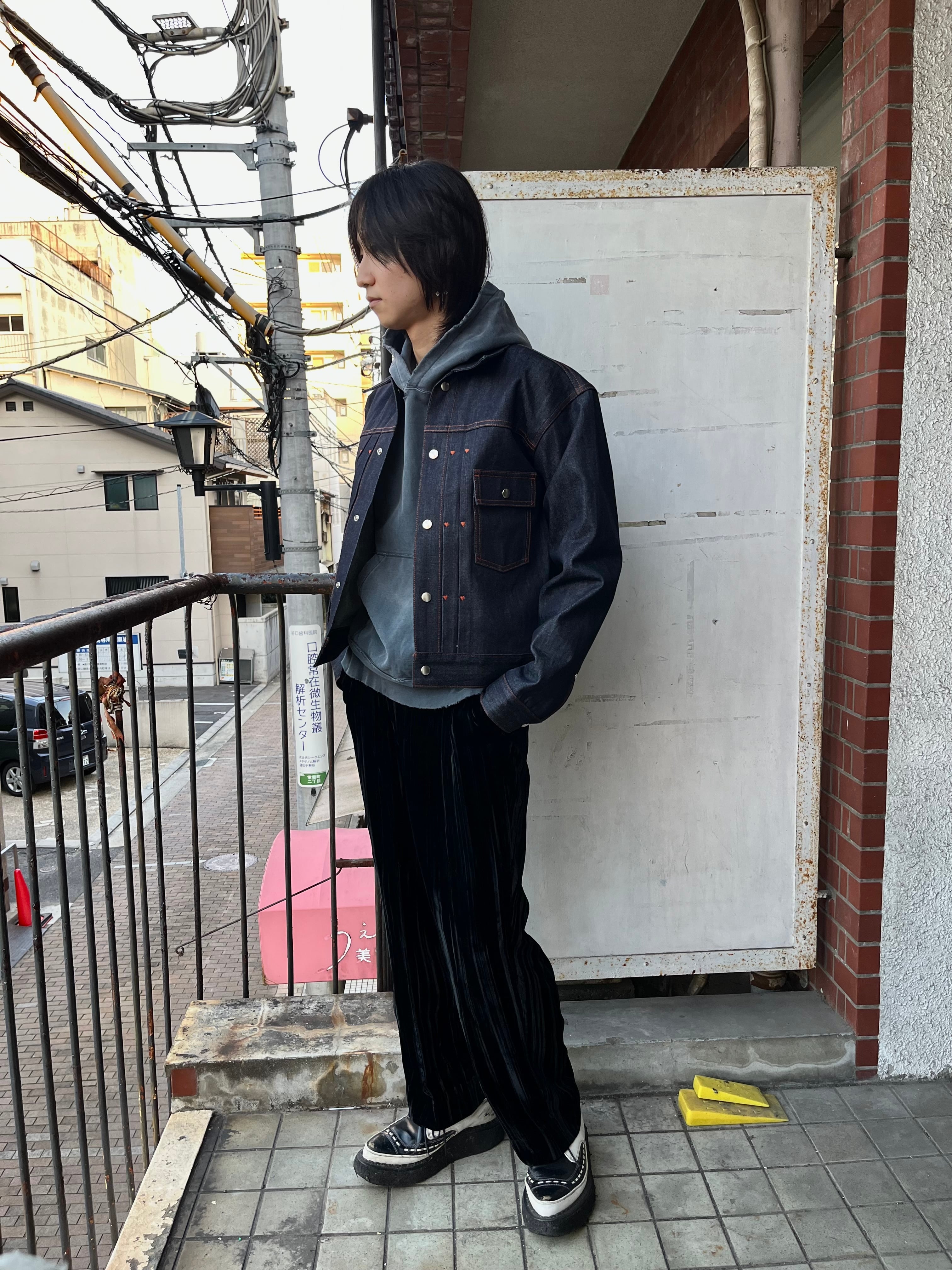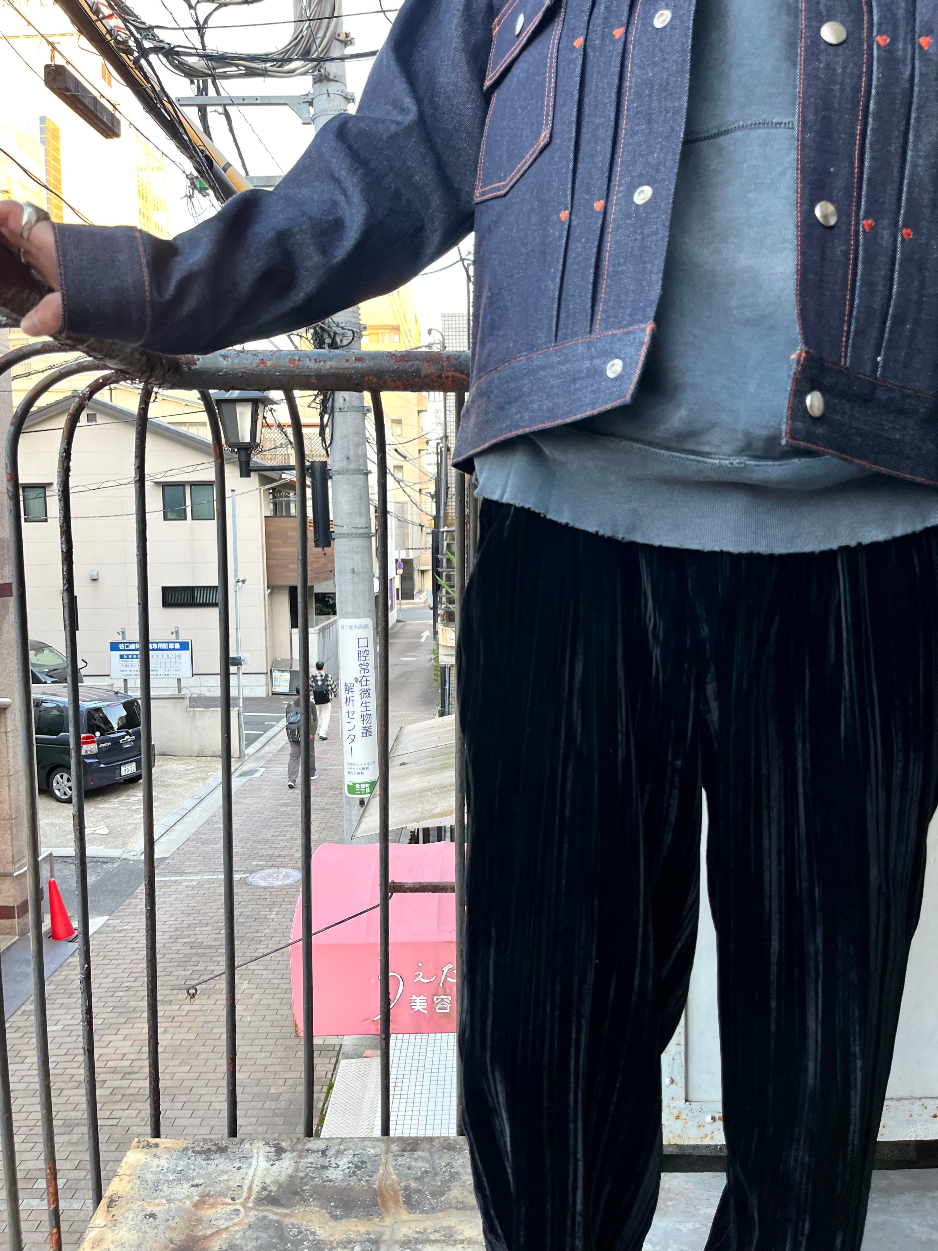 あまり見ないベロアとコーデュロイを掛け合わせたようなパンツ。